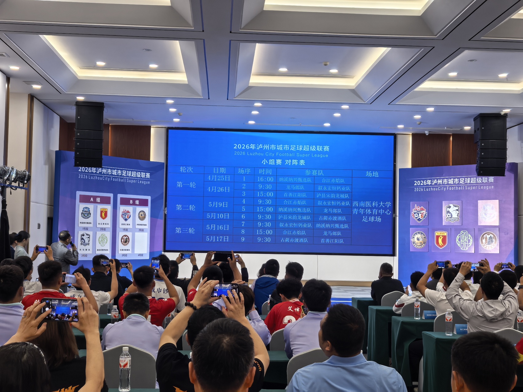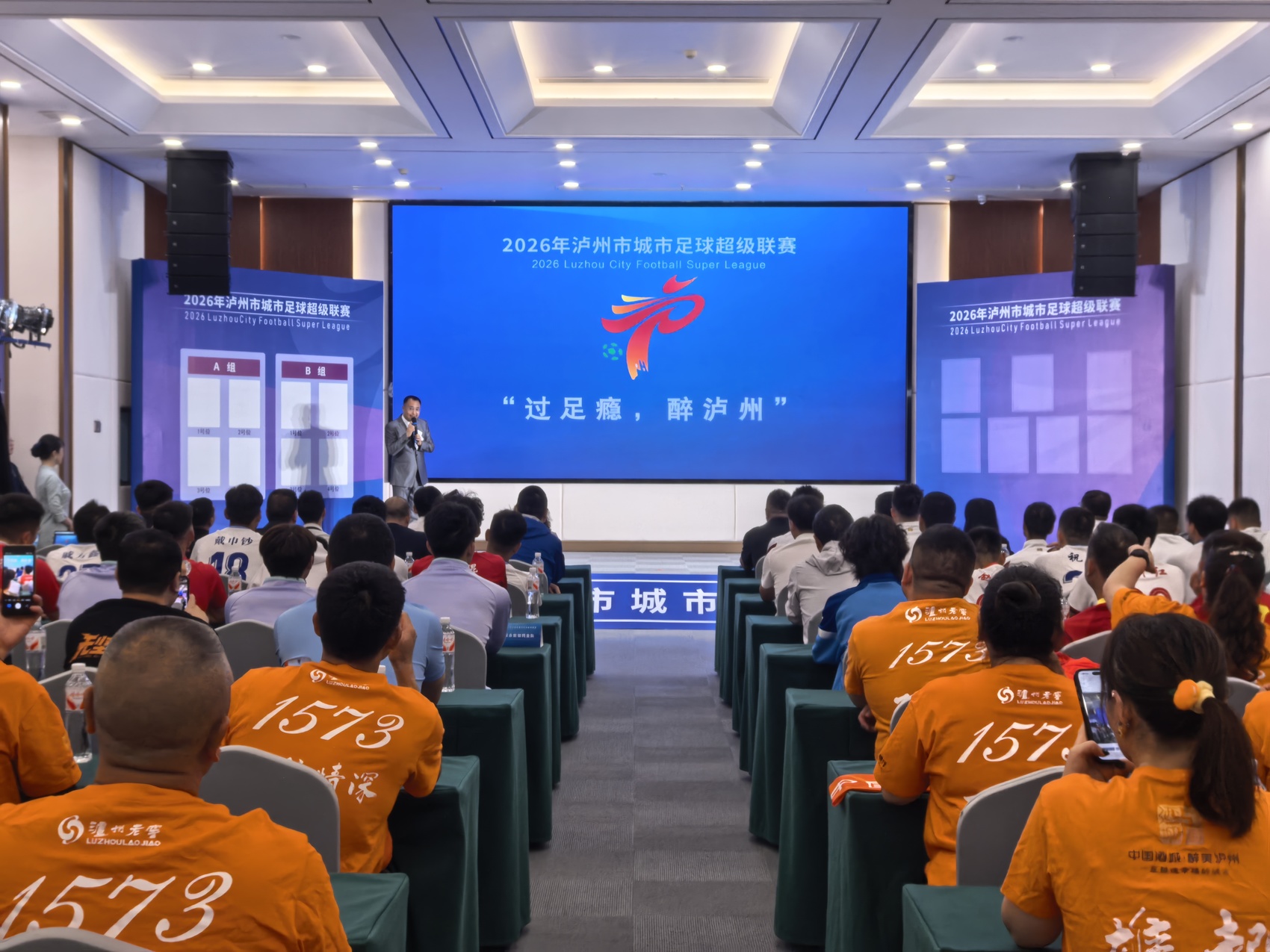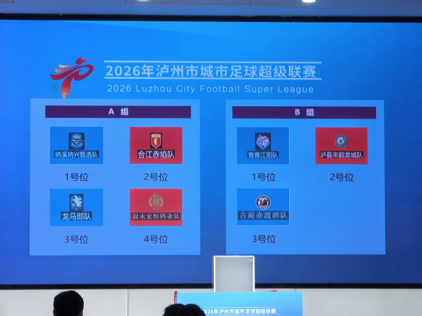 4月12日,2026年泸州市城市足球超级联赛赛前发布会举行。发布会上,泸州市教育和体育局介绍了“泸超”联赛赛制、筹备进展、特色亮点,“泸超”主题LOGO、口号正式发布,7支代表队落位抽签结果现场揭晓。