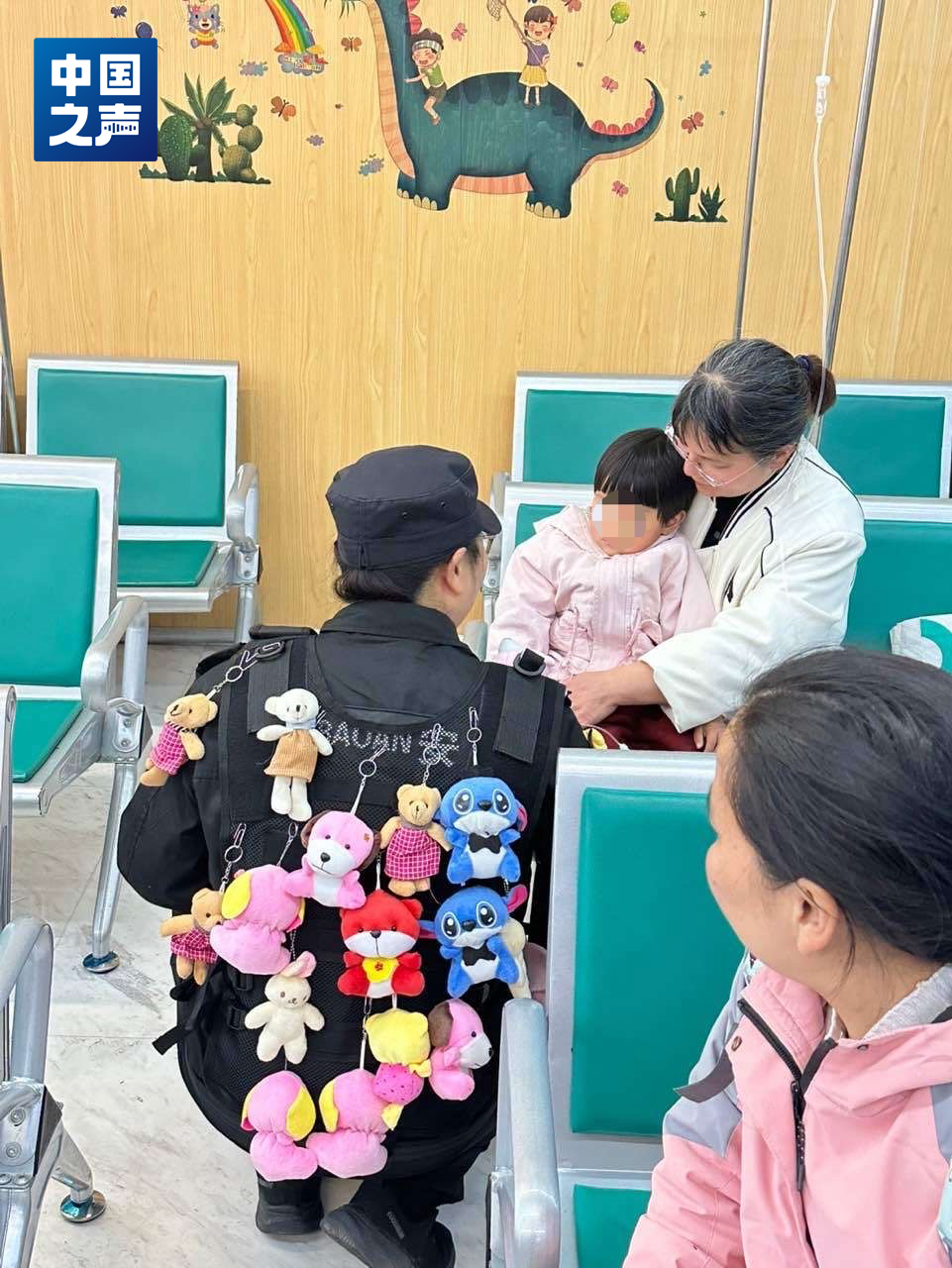 于是,今年3月,郑淑芬作为“玩具保安”正式上岗。郑淑芬介绍,她没有固定行动路线,孩子的哭声就是她的“行动方向”。儿科门诊、输液室、采血窗口……哪里孩子哭得厉害,她就出现在哪里。