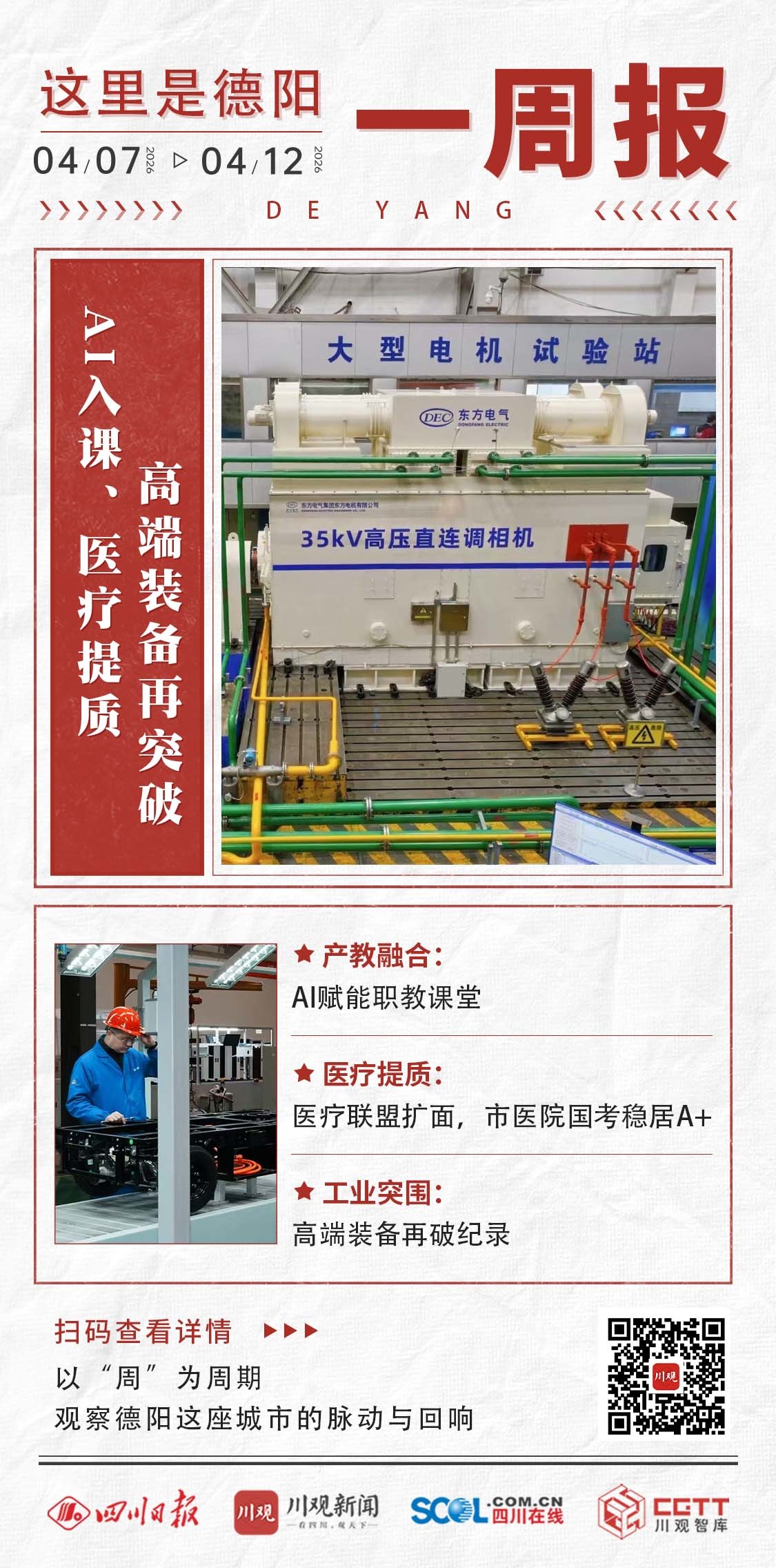 过去一周(4月7日至12日),德阳在高端装备攻关、职教数智转型与医疗服务升级等领域密集落子,为新一轮发展积蓄强劲动能。