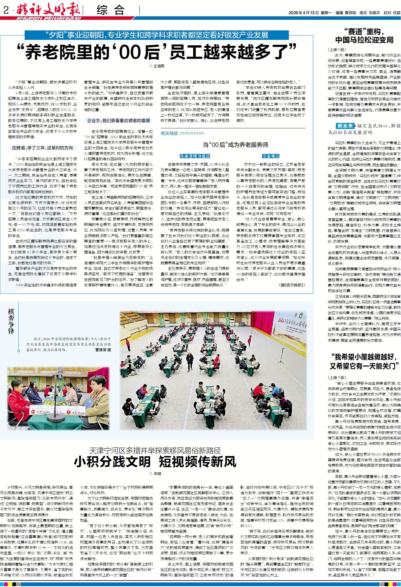 “夕阳”事业迎朝阳,银发浪潮正吸引众多年轻人入行。4 月9日,上海养老服务人才高校专场招聘在上海工程技术大学松江校区举办,现场人头攒动、气氛热烈。近50家机构、企业发布“求贤令”,招聘总人数达300人。养老服务行业究竟如何?为什么那么多年轻人入行?一起来今日2版头条,看看从业者和专家的说法。