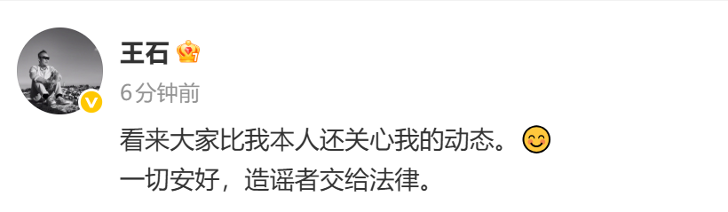 刚刚,王石发文回应:一切安好,造谣者交给法律。