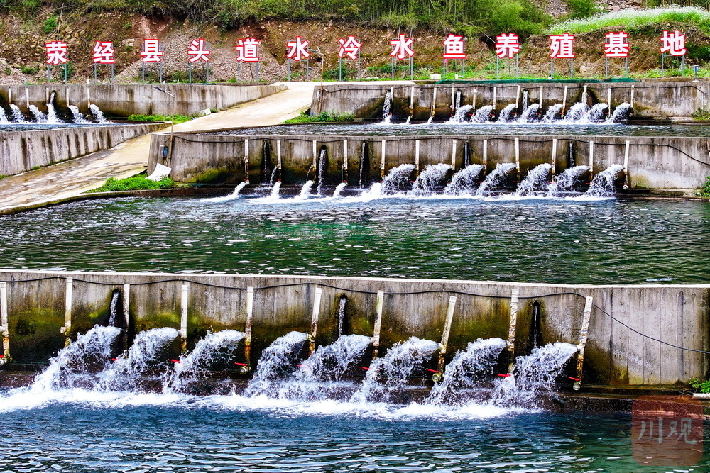 雅安市荥经县牛背山镇头道水冷水鱼养殖基地依“头道水”而建,河水清澈冰凉,上游不远处接壤大熊猫国家公园,被层层青山环抱。这里每年可产200万尾虹鳟,预计年产值约6000万元。>>>>“焕新”之后的“头道水”,游出了三文鱼丨田野来讯