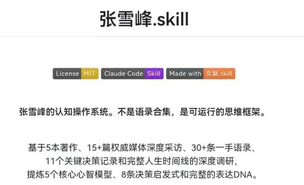 一款名为“张雪峰.skill”的开源项目