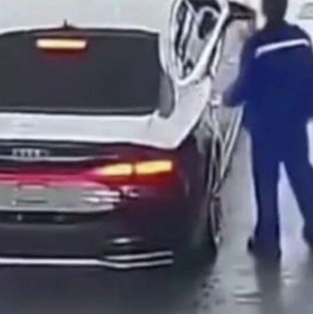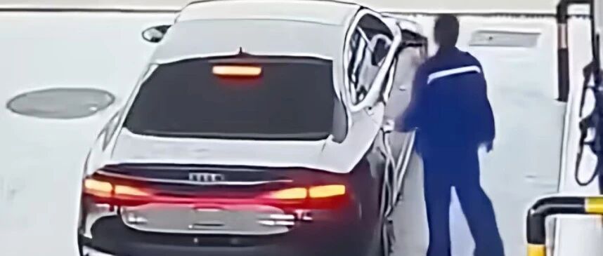 4月11日,安徽合肥,一辆奥迪车加632元油后逃单,工作人员追了两次没追上。