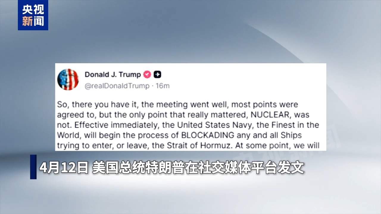 美国中央司令部12日宣布,根据总统公告,自美东时间4月13日上午10时起,将对所有进出伊朗港口的海上交通实施封锁,这将涵盖所有国家进出伊朗港口和其在阿拉伯湾、阿曼湾的各港口及伊朗沿海地区的船只,但不会阻碍往返非伊朗港口的船只通行霍尔木兹海峡。