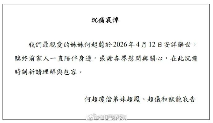 据港媒报道,“赌王”何鸿燊女儿、信德集团执行董事何超蕸今日(12日)逝世,临终前家人陪伴在侧。由何超蕸出任执行董事的信德集团,沉痛哀悼何超蕸逝世,并附上家人通告。