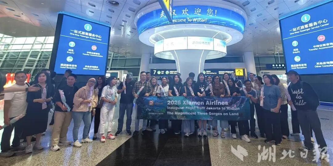 4月12日13时25分,厦门航空MF8683航班搭载140余名旅客由印度尼西亚雅加达飞抵武汉天河国际机场,标志着武汉至雅加达定期客运航线开通,填补了武汉直飞印尼核心城市的运力空白。
