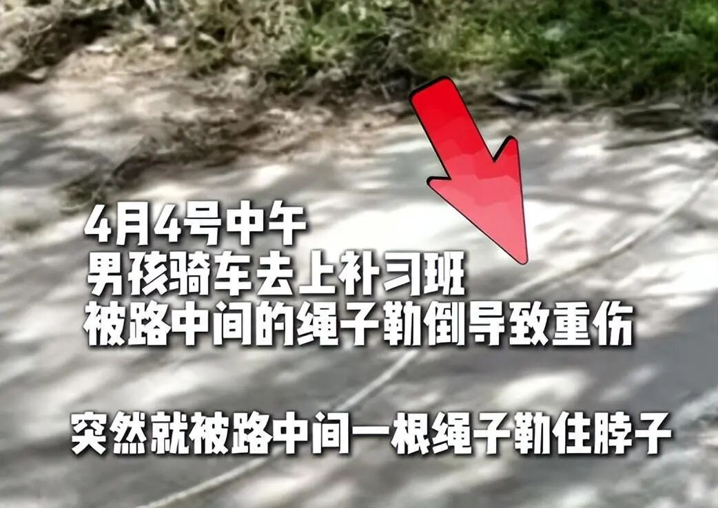 据媒体4月11日报道,近日,河南焦作某村一老人为打玉米,私拴绳子拦村道。一名13岁男孩骑车上学时缠住颈部,瞬间被勒倒。男孩忍痛,托着脑袋生生跑回了家。
