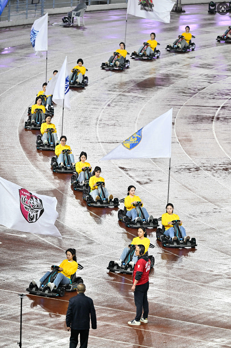 我们首先震惊于常州将“场内外互动”做到了极致。开幕式上,40辆印有各市标识的新能源卡丁车风驰电掣,吉祥物“苏嘟嘟”与观众隔空击掌,这种“流动的江苏情书”瞬间点燃了同城荣誉感。