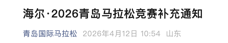 为做好海尔·2026青岛马拉松竞赛组织工作,保证选手安全、有序参赛,根据《海尔·2026青岛马拉松竞赛规程》(下简称为《竞赛规程》)第五(三)条,现将《竞赛规程》做如下修订: