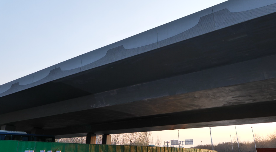 这次施工还把工艺创新和城市文脉结合到了一起。重工街跨建设大路这段桥梁正好位于沈阳老工业区域,项目特意在防撞墙外侧设计了一款带有齿轮纹路的UHPC外板。通过内衬模工艺,把充满工业风的艺术花纹和混凝土结构融为一体,独特的齿轮肌理生动展现沈阳工业城市的鲜明气质。这样一来,防撞墙既保留了UHPC材料的优异性能,又让桥梁不再只是冷冰冰的交通设施,而成为承载城市记忆、展现工业文化的人文景观,实现了工程价值和文化价值的“双向奔赴”。
