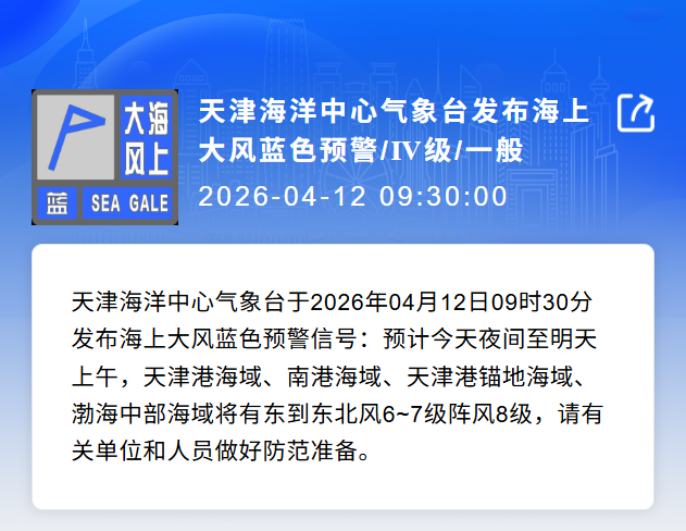 海上大风蓝色预警信号生效中