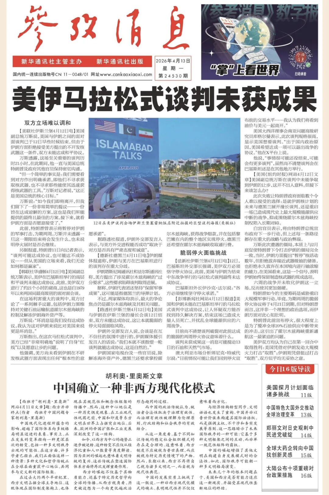 今日出版的《参考消息》数字报,五大看点不容错过。