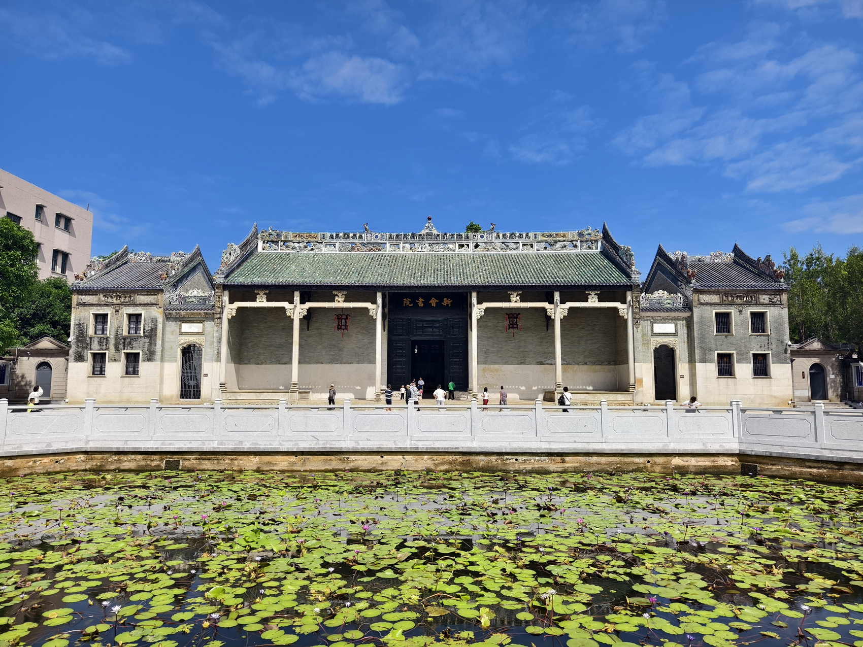 走出新会书院,回身望去,匾额上鎏金大字在阳光下熠熠生辉。一宫一院,隔街相望,一脉相承,在新时代共同书写着岭南文脉活态传承的新篇章。