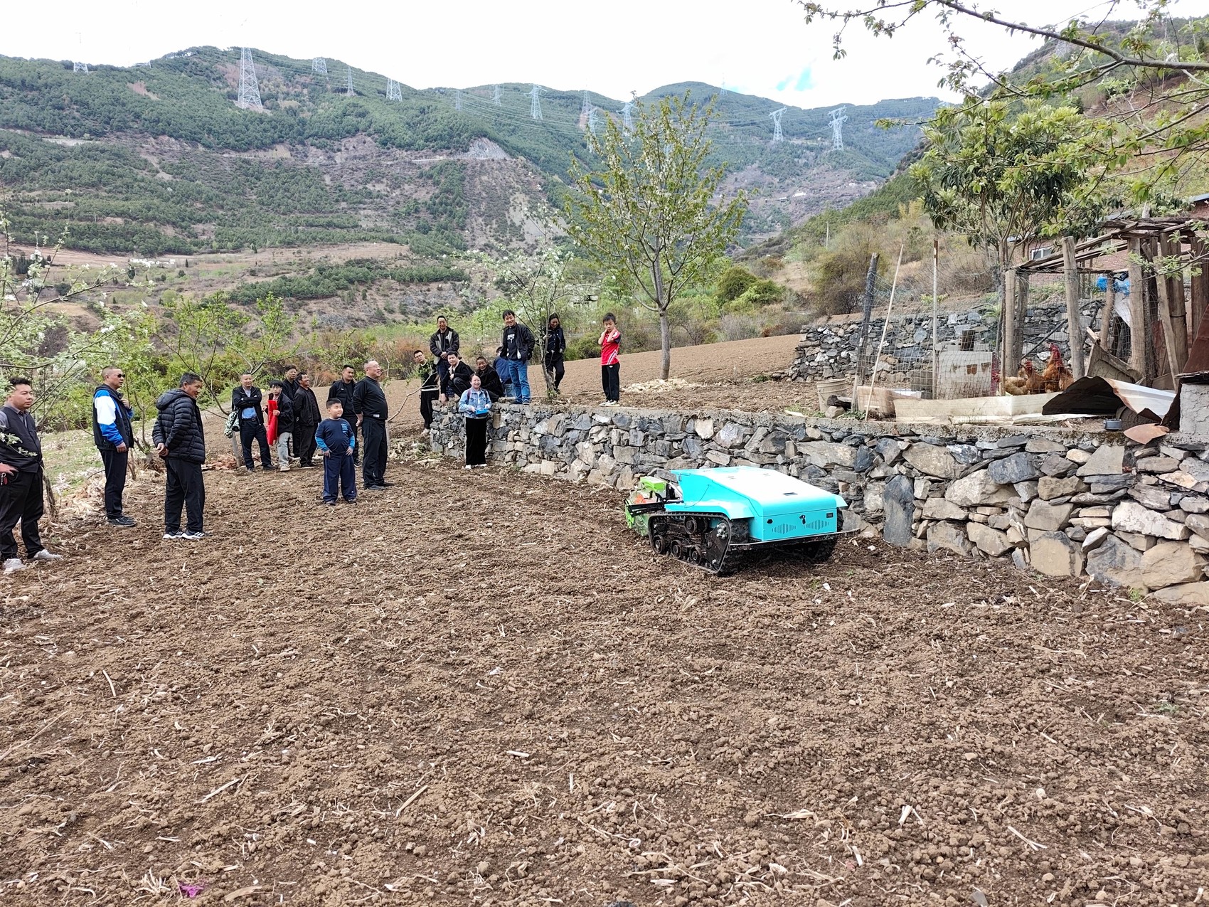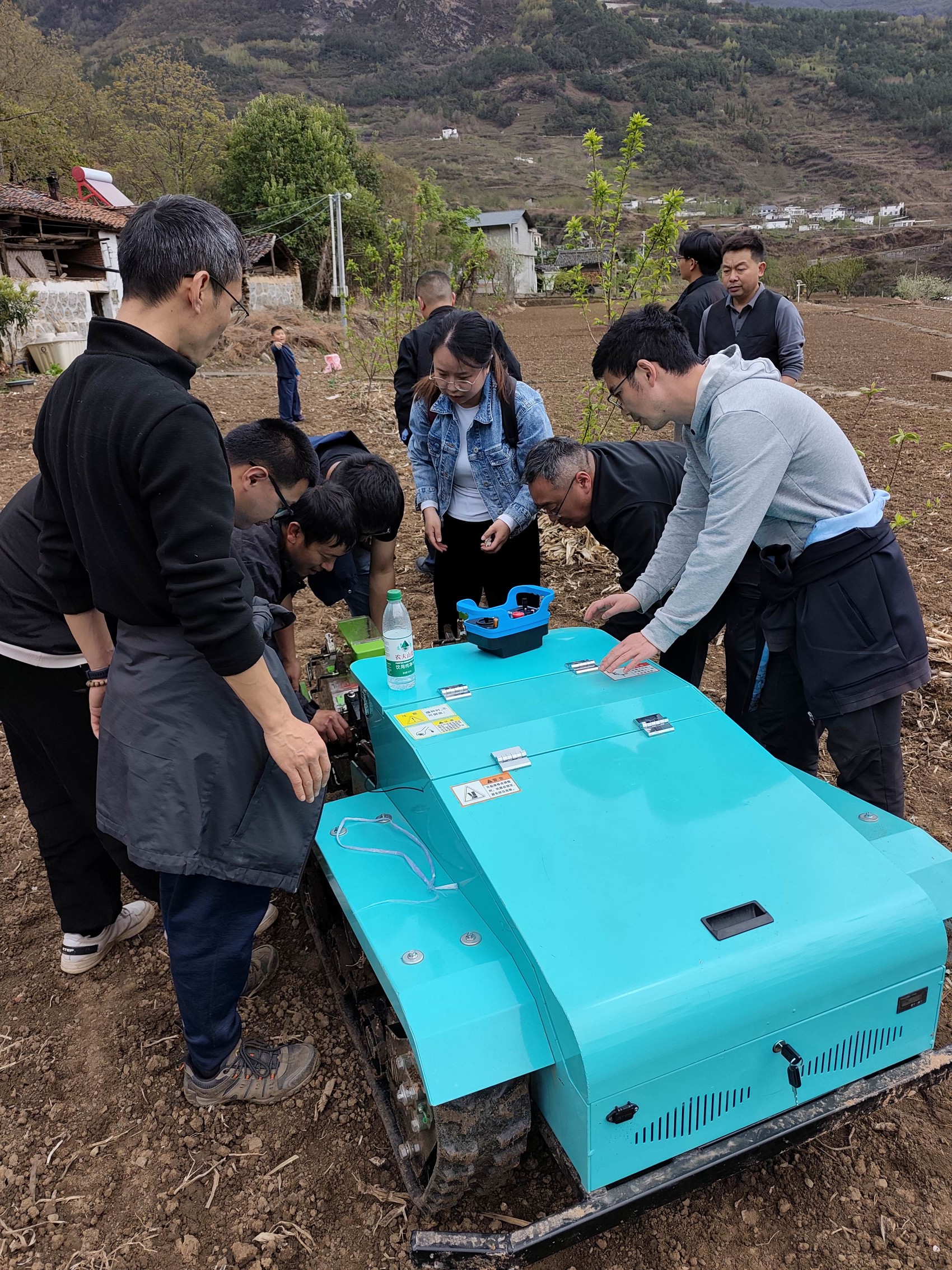 履带遥控玉米播种机在作业。
