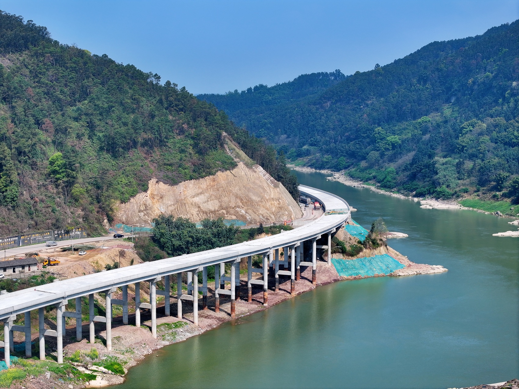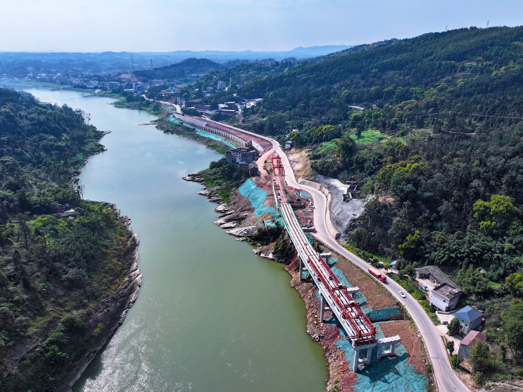 该项目设计时速80公里,双向四车道,可承载1000吨级大件荷载。其中自贡段分三期建设,全长3公里的一期工程已实施完成。当前正在加快推进的是全长约60公里的二期工程,从2024年8月开工算起,已累计完成路基工程75%、桥梁工程55%,完成投资24.35亿元。三期工程也已进入启动攻坚阶段。
