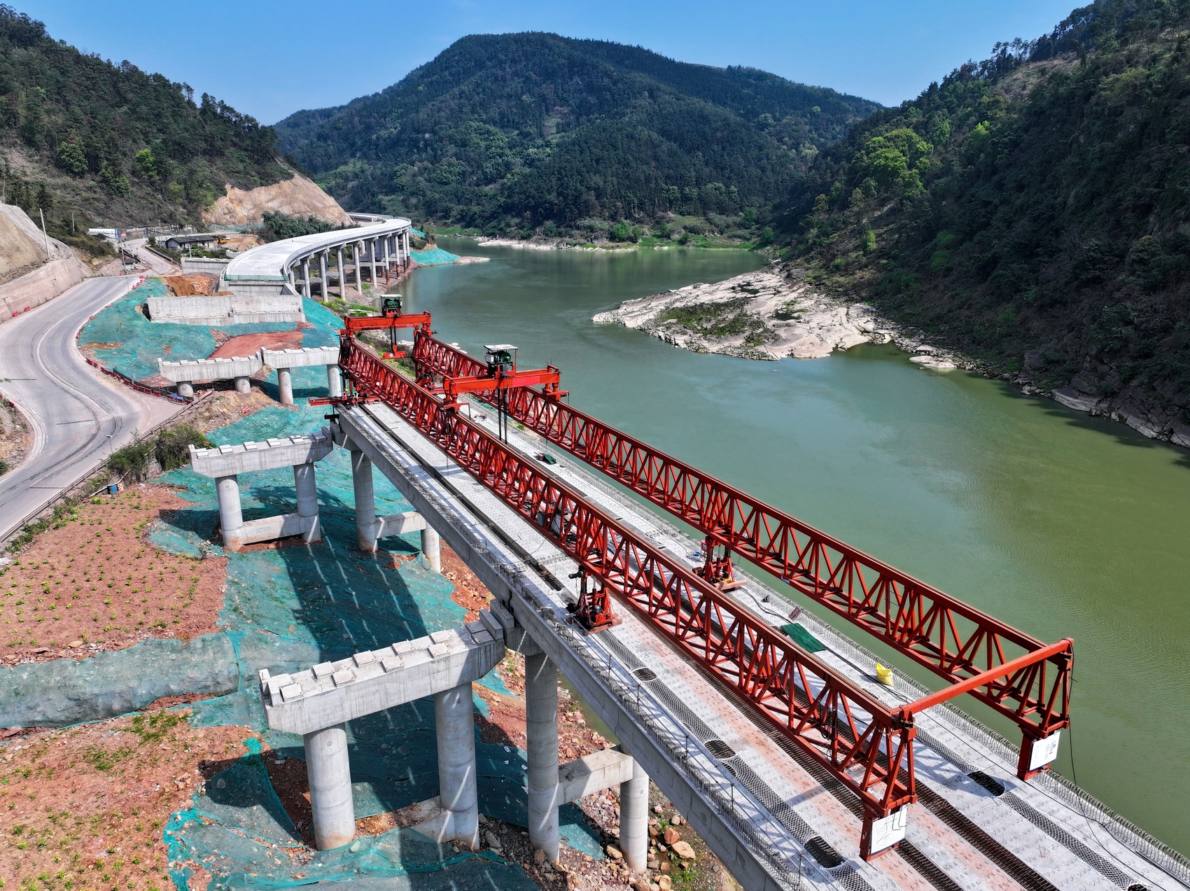 近日,记者在自贡市富顺县安溪镇附近看到,这里正同时修建六座桥,它们被统一称作安溪沿江桥群,是自贡至泸州港公路项目的控制性工程。“3月30日取得阶段性进展,观音湾2号大桥左幅T梁全部架设完成。”中国五冶集团自贡至泸州港公路二期项目工程部部长李乾坤说。