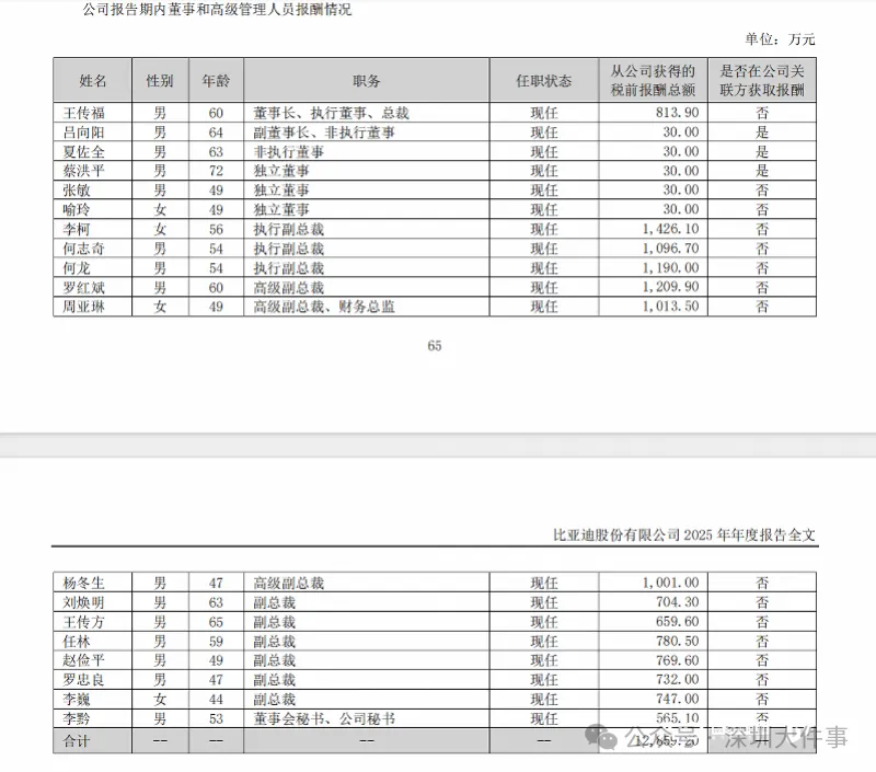 日前,比亚迪发布2025年年报,高管薪酬成为市场焦点。