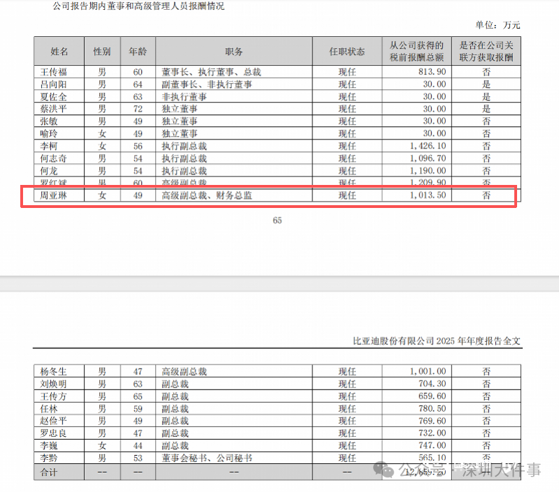 日前,比亚迪(002594.SZ)发布2025年年报,高管薪酬成为市场焦点。