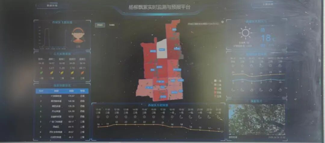 精准预报是科学治絮的核心前提。北京市深度融合气象大数据与地面人工核查网络,搭建杨柳飘絮实时监测与预报平台,目前已实现东城区、西城区等核心区域街道级飞絮实时监测与精准预报。