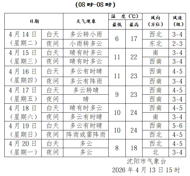 周三起沈阳最高气温
