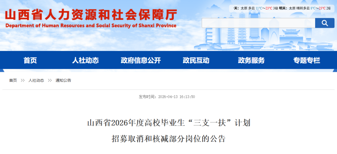 根据《2026年度山西省高校毕业生“三支一扶”计划选拔招募公告》,现将取消和核减的招募岗位予以公布。