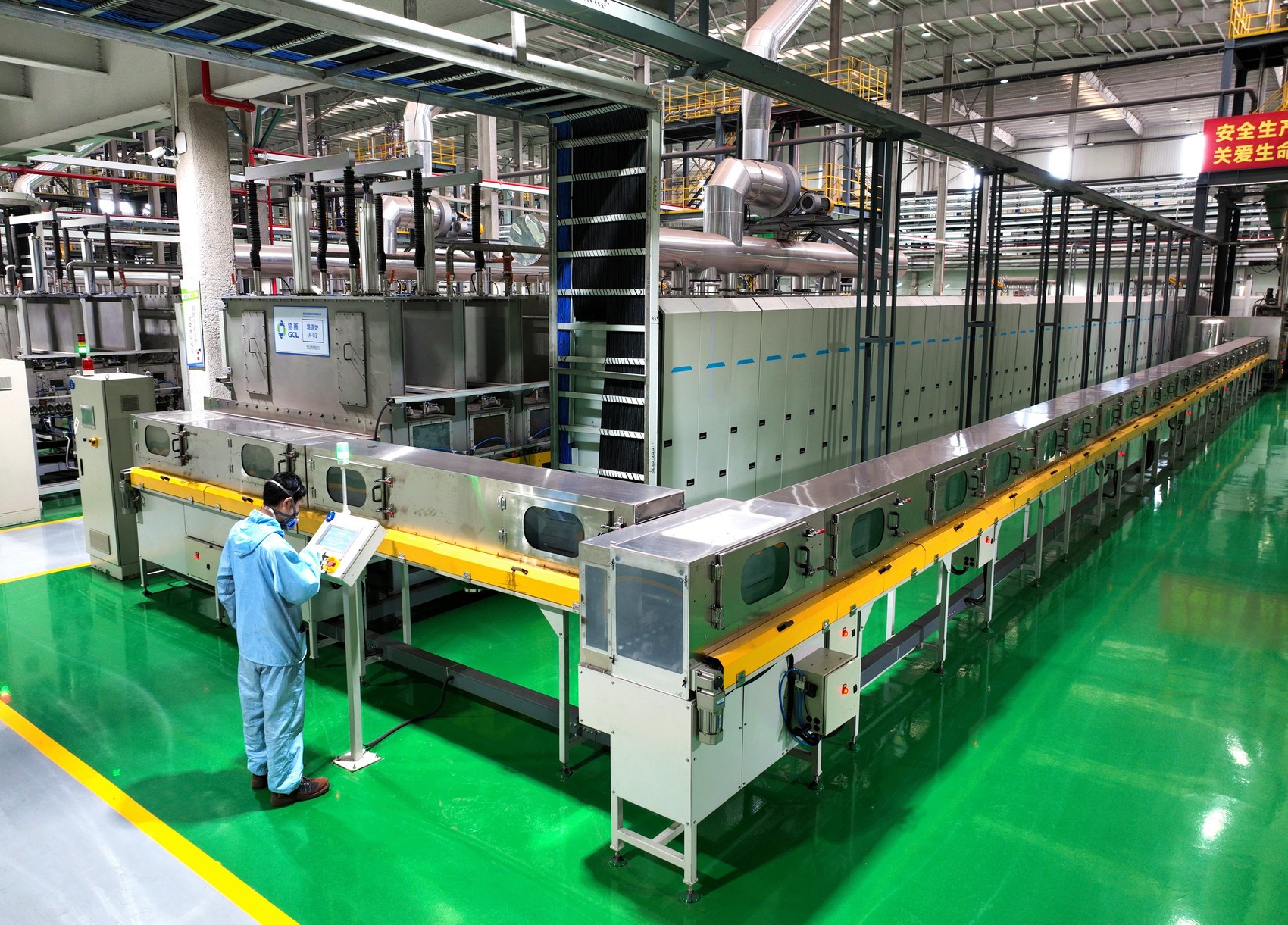 在四川协鑫锂电科技有限公司内,工人正在操作全自动生产设备。(仁寿县委宣传部供图)