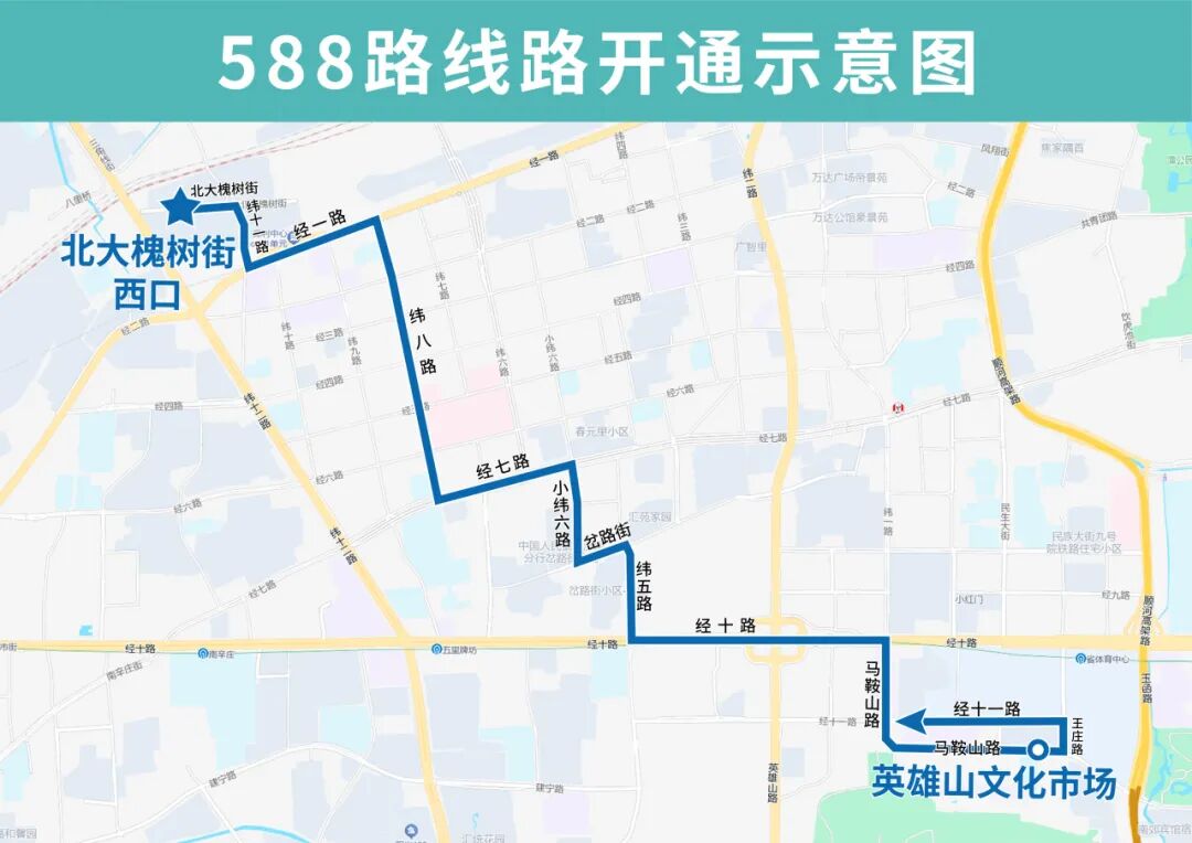 为持续做好线网优化工作,加强与经十路地铁4号线的接驳,增加纬八路、小纬六路等道路公交覆盖。4月15日起,济南公交开通试运行588路。
