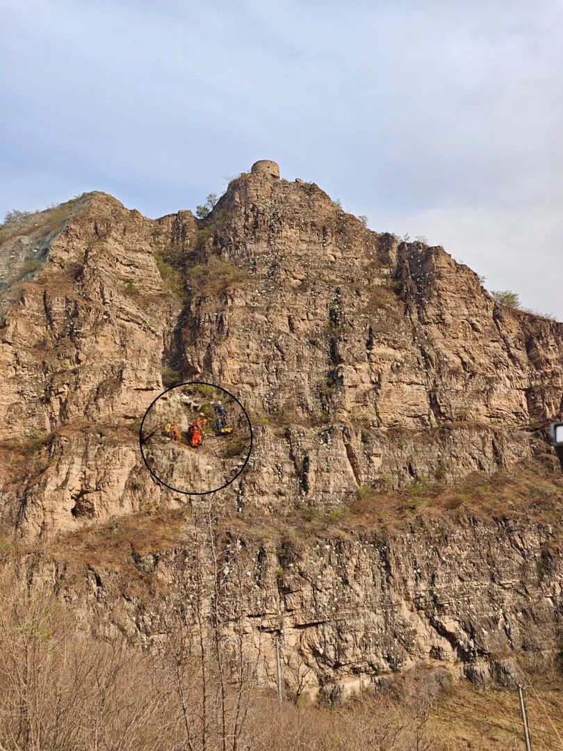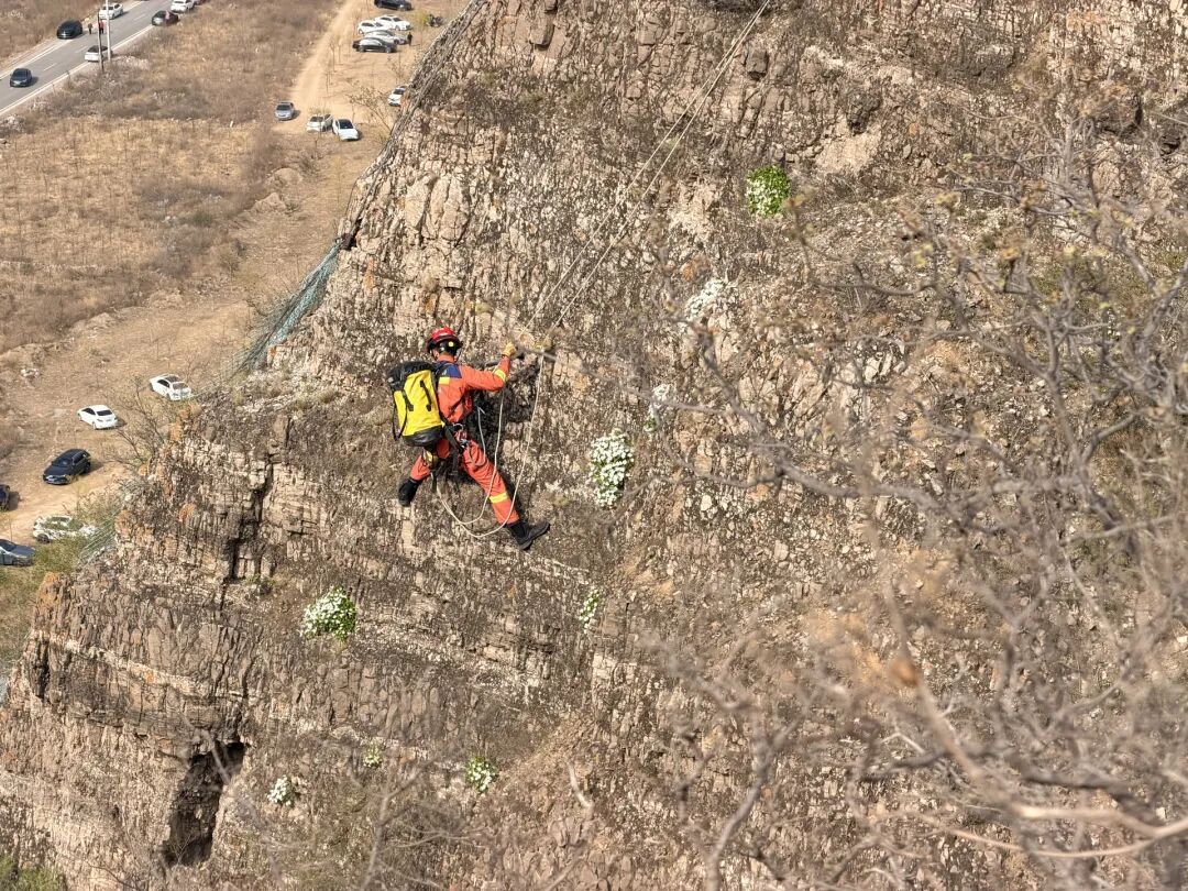 4月12日下午,北京市门头沟区斋堂镇一处野山发生惊险一幕:一名30多岁的登山男子不慎从山顶坠崖,跌落50米,掉在半山腰,身受重伤、意识模糊。