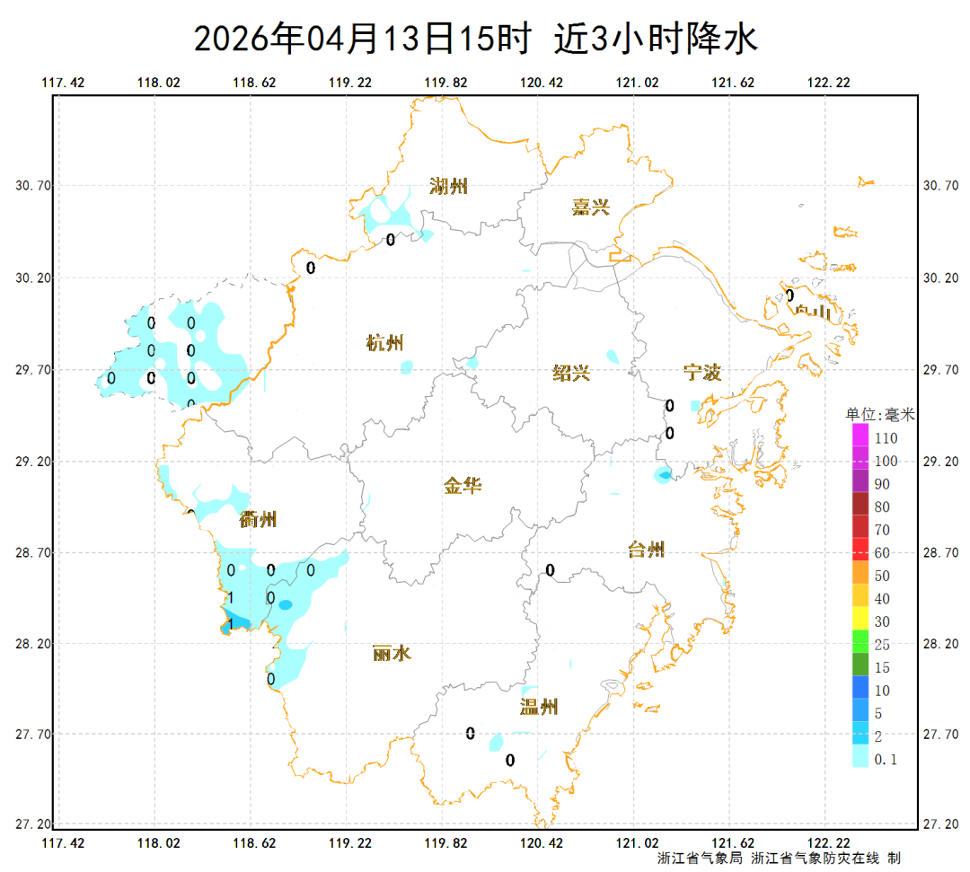 昨日午后,厚云层覆盖我省上空,雨水并未开始发力,只是阵雨前来点缀,加上雾气仍未消散,映入眼帘的是一幅江南水墨画。截至13日15时,近3小时累计雨量最大为台州天台县三合站10.1毫米。