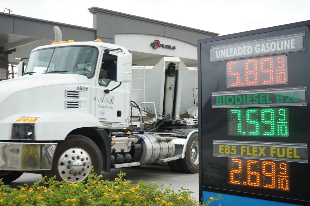 这是3月31日在美国加利福尼亚州蒙罗维亚市一座加油站拍摄的油品价格。新华社发(曾慧摄)