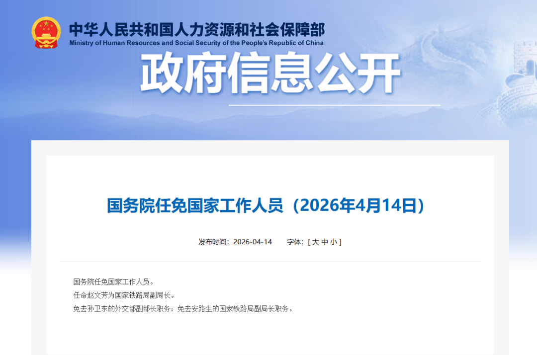 免去孙卫东的外交部副部长职务;免去安路生的国家铁路局副局长职务。