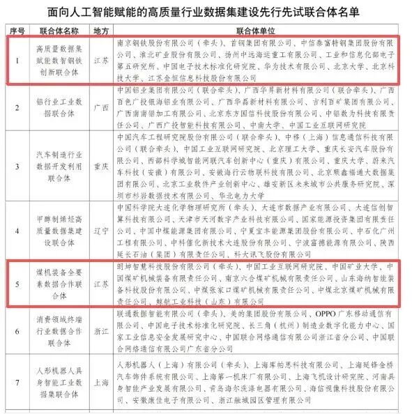 朗坤智慧科技股份公司(以下简称“朗坤智慧”)牵头的“煤机装备全要素数据合作联合体”