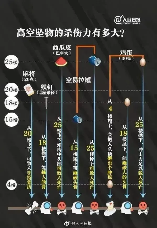高空抛物被称为“悬在城市上空的痛”,严重威胁群众的生命和财产安全。治理高空抛物行为,我国现行法律形成了一套‘民事—行政—刑事’的全流程组合打法。高空扔东西有后果,轻则承担民事赔偿或行政拘留,重则面临刑事追责。