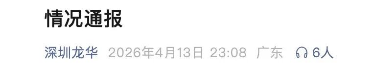 4月13日深夜,针对“深圳一楼盘排队抢房,保安喷辣椒水赶人”事件,“深圳龙华”微信公众号发布情况通报: