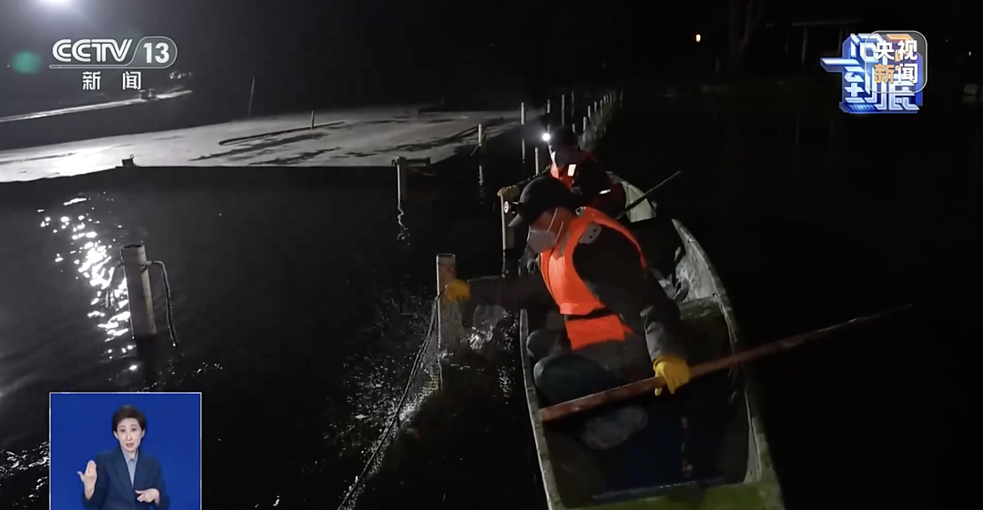 4月11日凌晨,记者在杭州西湖岳湖“荷区清塘”现场看到,工作人员正两人一组乘船作业,对没有游出荷区的鱼及时清捞,放入菱桶内保活,后续放生到荷区外的普通湖区。