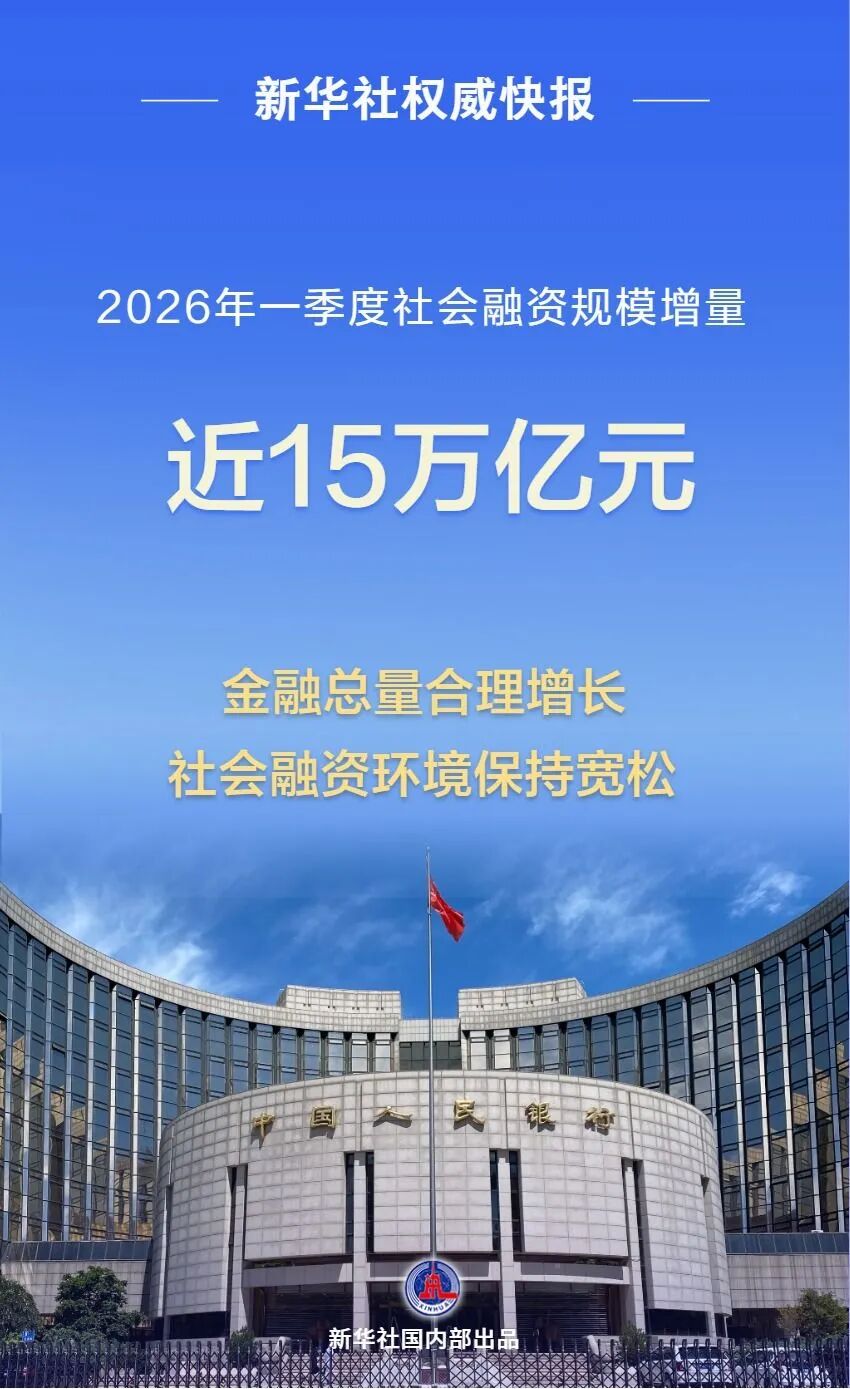 一季度我国社融规模增量近15万亿元