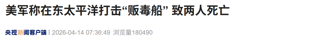 当地时间4月13日,美国南方司令部表示,其在东太平洋实施了一次打击“贩毒船”行动,造成两人死亡。