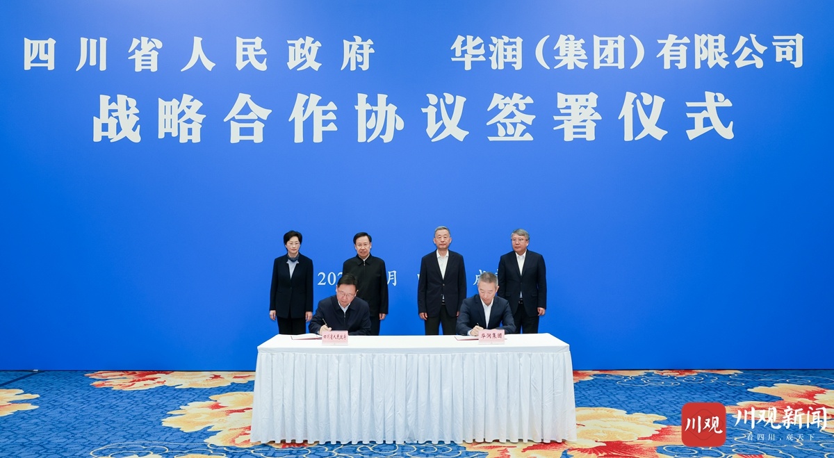 签署仪式上,省委常委、常务副省长董卫民与华润集团副总经理陈小军分别代表双方签署《四川省人民政府 华润(集团)有限公司战略合作协议》。根据协议,双方将积极抢抓“十五五”发展机遇,充分发挥各自优势,全面贯彻全国统一大市场要求,围绕科技与新兴产业、大健康、综合能源、产业金融、大消费、城市建设运营、新型消费等领域开展全方位、多层次合作,持续提升合作质效,更好实现互利共赢发展。