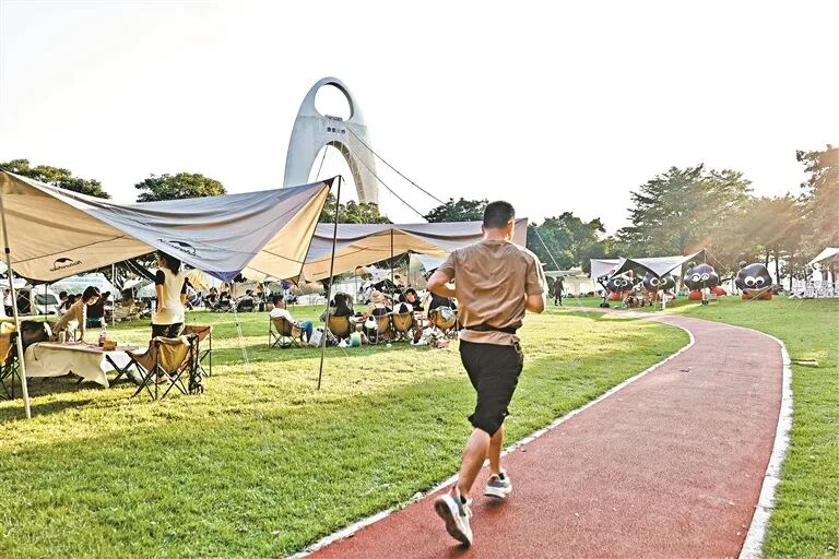 每逢周末,广州可供露营的草坪变了样。帐篷支起来,气垫床铺开,人们或躺或坐,在日光里享受片刻松弛。在“微度假”的旅游休闲浪潮中,草坪经济迎来爆发式增长。