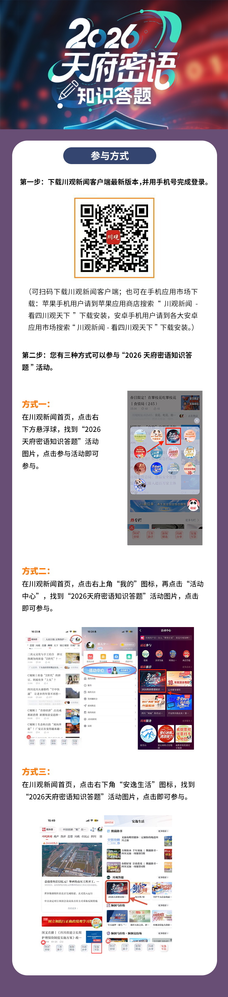 学保密知识、守国家安全,2026“天府密语”知识答题既有干货又有福利,还可累计教育培训学时。快来打开川观新闻APP,一起参与挑战、赢取好礼!
