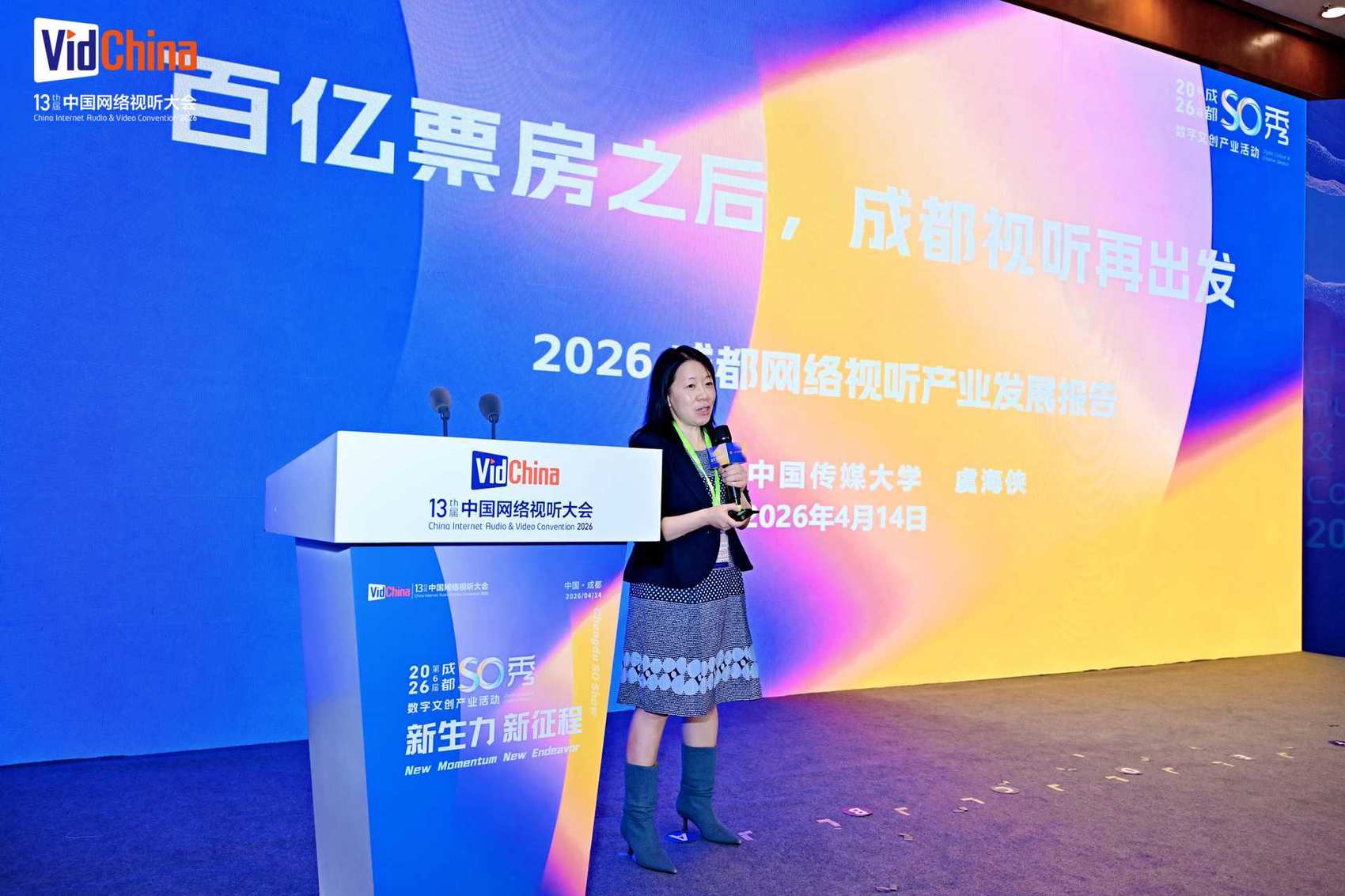 中国传媒大学数字商务系副主任虞海侠现场发布《2026成都网络视听产业发展报告》。报告显示,成都数字文创核心产业规模已突破4100亿元,影视动漫企业超3.7万家。国漫IP《遮天》全平台累计播放量超160亿;国产3A游戏《明末:渊虚之羽》销量突破126万套;海艺互娱海外用户占比超90%,恒图Fotor全球用户达7亿。虞海侠表示,“依托深厚文化根脉与前沿技术支撑,在影视动漫、微短剧、游戏电竞、音乐演艺、数字文创等领域多点突破,成都正加快从内容高地向具有全球影响力的视听产业生态高原跨越。”