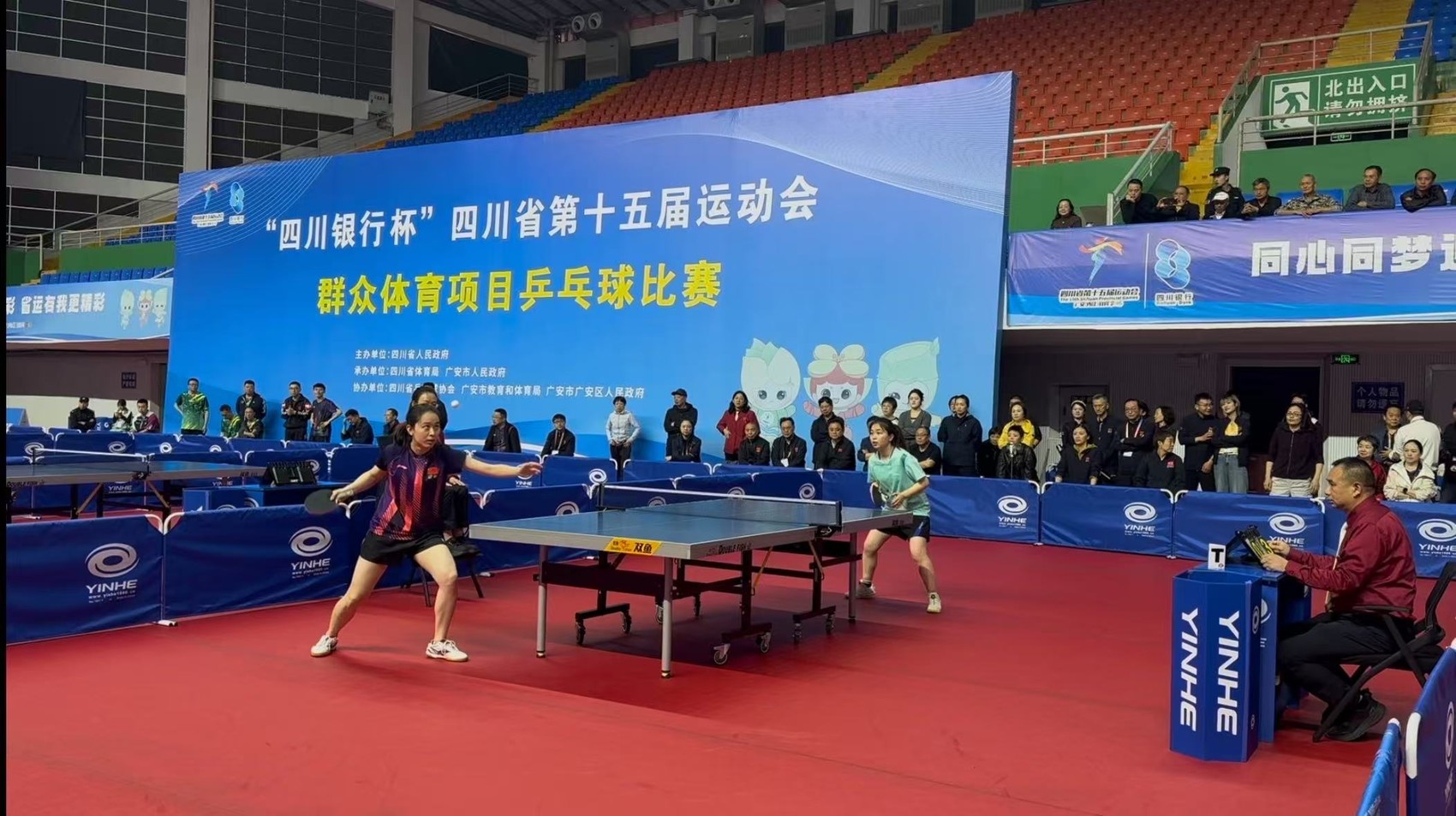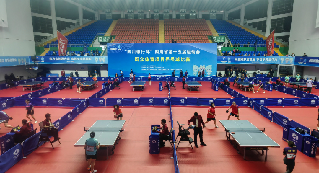 4月14日,随着成都市代表队、乐山市代表队在团体比赛中夺冠,四川省第十五届运动会群众体育项目乒乓球比赛在广安落下帷幕。11枚金牌被成都、宜宾、自贡、泸州、绵阳等7个市州分享,12个市州代表队有奖牌入账,显示出该项运动在四川良好的群众基础。