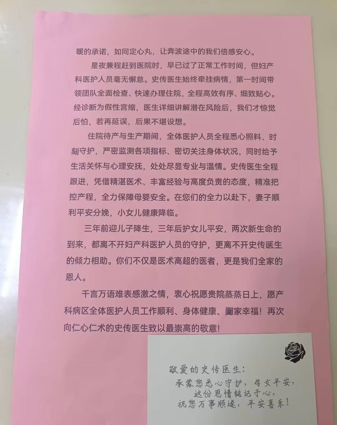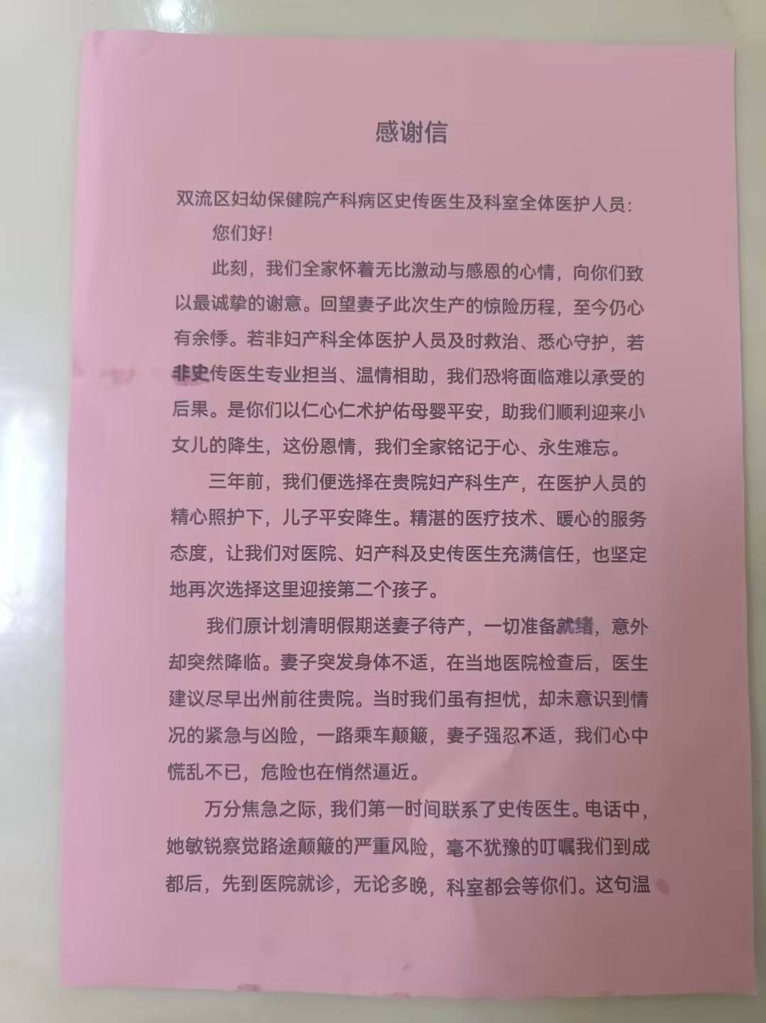 “是你们以仁心仁术护佑母婴平安,助我们顺利迎来小女儿的降生,这份恩情,我们全家铭记于心、永生难忘。”4月初,一封感谢信送至成都市双流区妇幼保健院产科病区。写信人是产妇拉姆(化名)的家属,信中提到三年前儿子在此平安降生,三年后女儿出生时又化险为夷,“你们不仅是医术高超的医者,更是我们全家的恩人。”