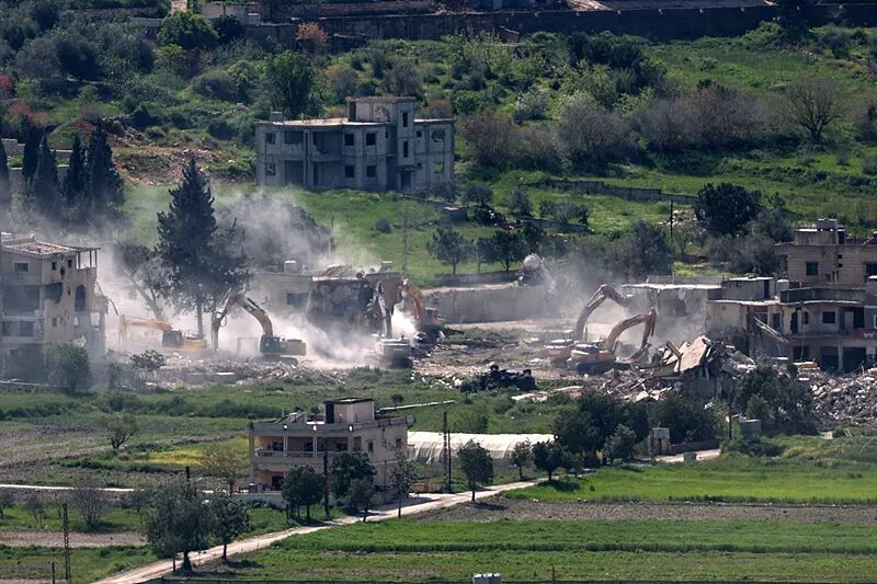 △4月13日,黎巴嫩南部,以军挖掘机在拆除一处建筑
