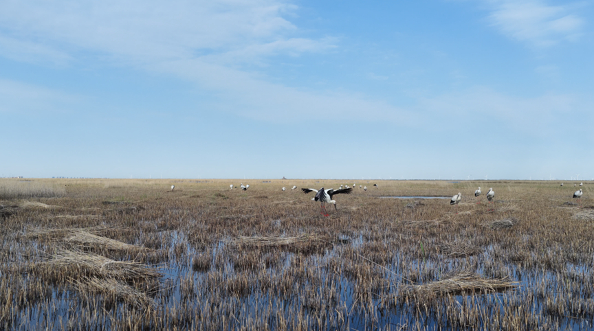四月的河北沧州南大港湿地,春意正浓,草木蔓发。在这万物复苏的季节里,这片湿地迎来了一群高贵的“稀客”——70余只国家一级保护动物东方白鹳。作为湿地生态环境的“风向标”,这些被誉为“鸟中大熊猫”的生灵,不仅是这里的过客,更成了这里的“常客”。
