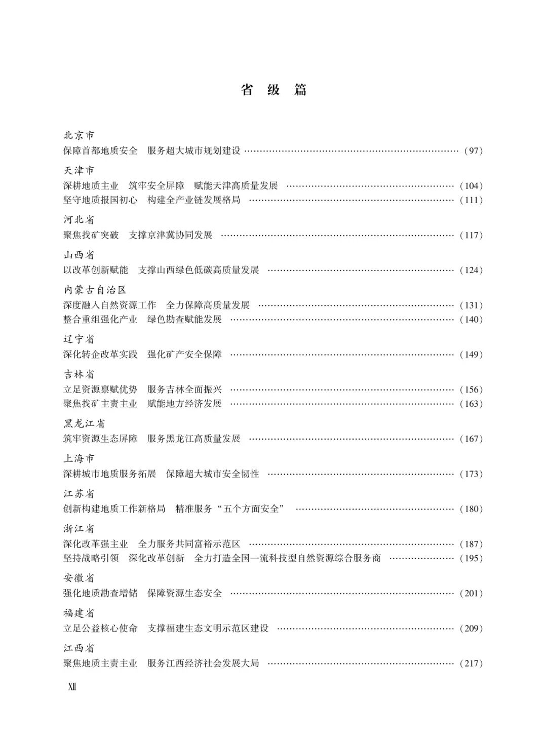 全书由总论篇和省级篇组成,总论篇论述了新时代地质工作的发展背景、主要进展与成效、国有地勘单位改革进展、典型实践案例和2035年愿景5个部分,省级篇详细介绍了31个省(自治区、直辖市)的47家国有地勘单位的改革情况、取得的主要成果和未来工作部署等。
