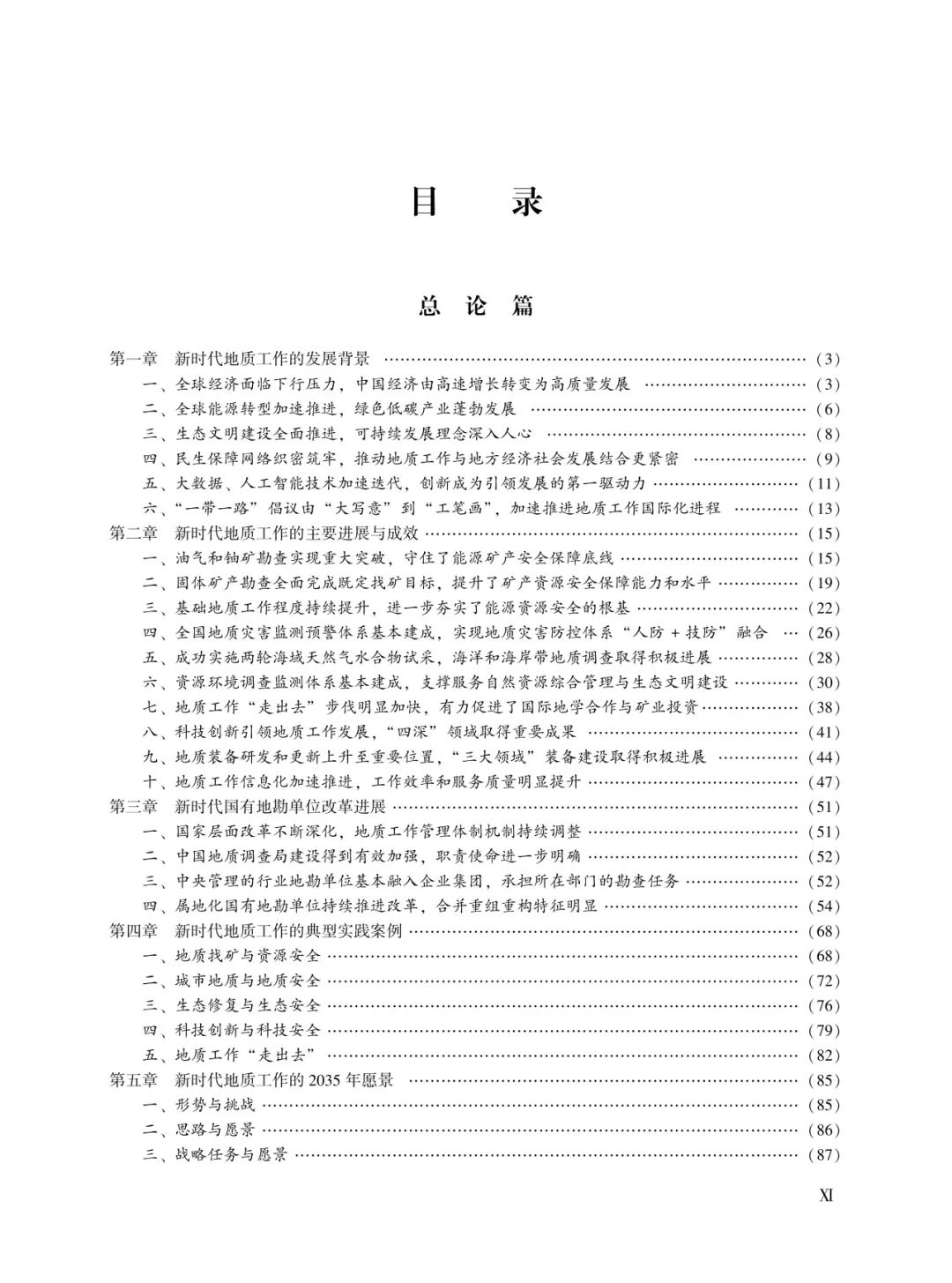 该书首次全景式地展示了新时代以来我国地质工作在能源矿产地质、固体矿产地质、基础地质等10个方面取得的主要成果和成效,系统总结了国有地勘单位改革进展和现状,精选了实践中涌现的16个典型案例,研究提出了到2035年的地质工作重点任务与战略布局。