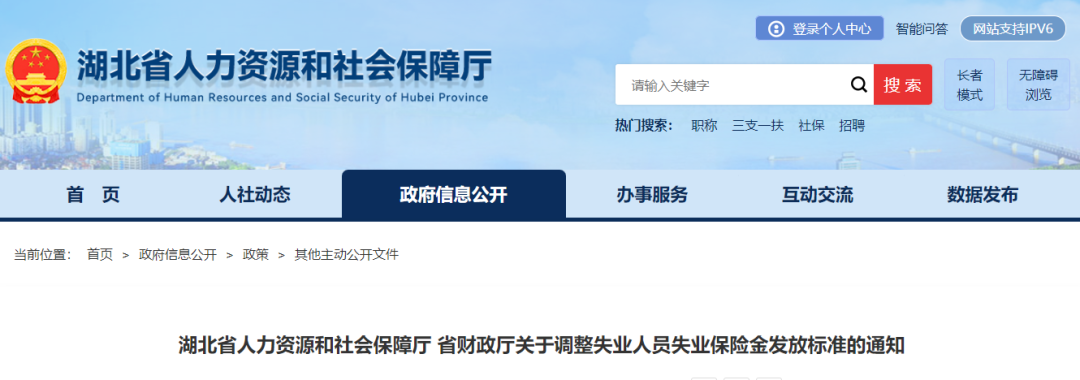 湖北省人力资源和社会保障厅、湖北省财政厅发布通知调整失业人员失业保险金发放标准