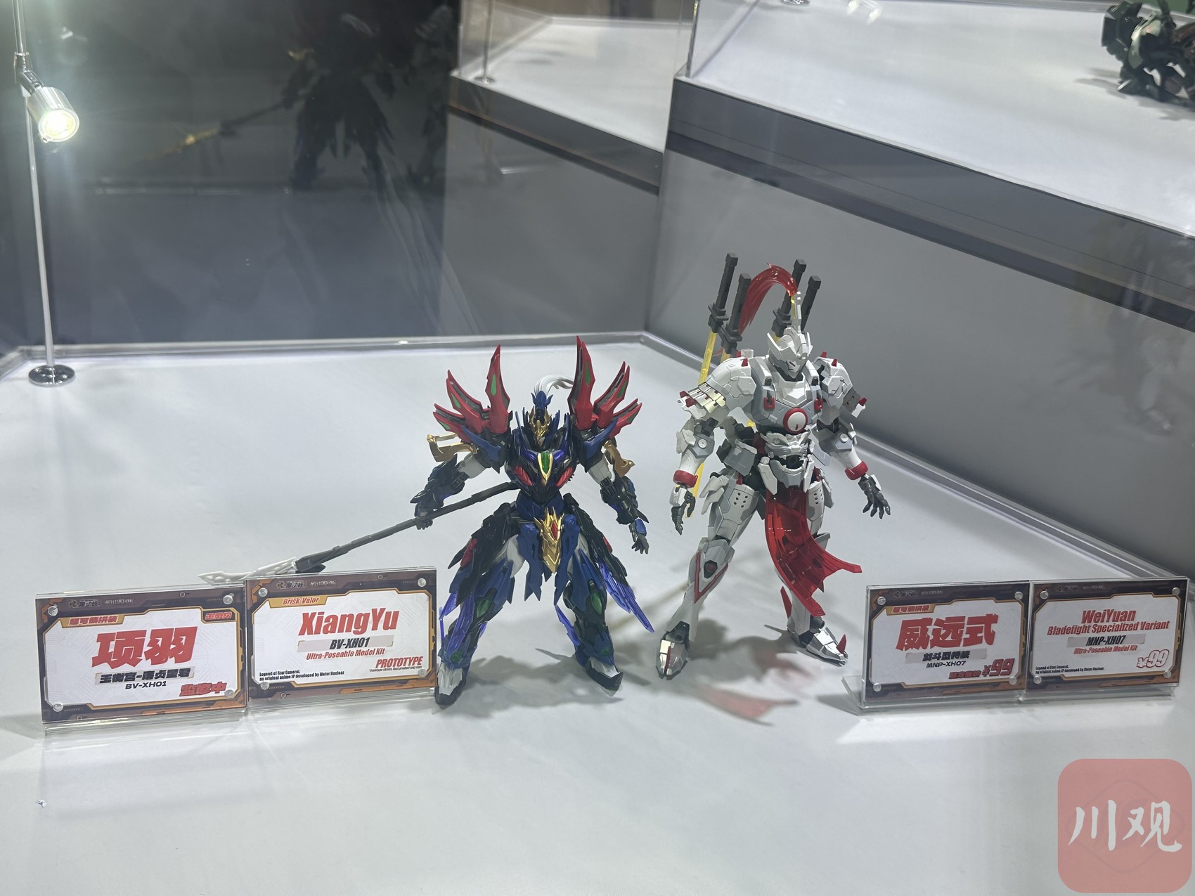 在国潮出海展区,一款机甲威风凛凛,凭借红蓝配色、瑞兽元素设计吸睛无数。